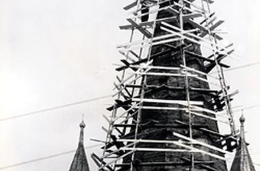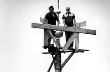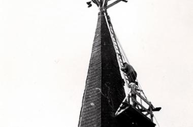 Letzte Baustelle von Altmeister Eugen Ansperger am Kirchturm in Viernau