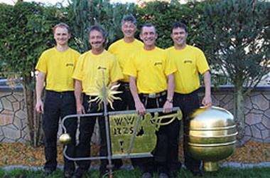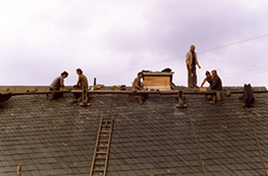Erweiterung des Betriebes auf 4 Gesellen und 2 Lehrlinge Spezialisierungsgebiet: Sanierung von Kirchtürmen und Schieferdächer