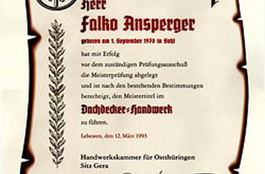 Die Handwerkskammer Südthüringen beruft Dachdeckermeister Falko Ansperger zum öffentlich bestellten & vereidigten Sachverständigen